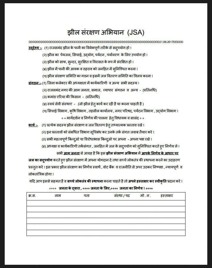 ЁЯТРрд░ाрдЬрд╕рдорди्рдж рдЭीрд▓ рд╕ंрд░рдХ्рд╖рдг рдЖрдо рдЬрдирддा рдХी рдкрд╣рд▓ЁЯТР ★ 20.08.2017 рдЭीрд▓ рд╕ंрд░рдХ्рд╖рдг рдХी рдЖрд╡ाрдЬ ★ 23.08.2017 рдЭीрд▓ рд╕ंрд░рдХ्рд╖рдг рд╣ेрддु рдоिрдбिрдпा рдХा рд╕рд╣рдпोрдЧ ★ 21.09.2017 рдЭीрд▓ рд╕ंрд░рдХ्рд╖рдг рд╕рдоिрддि рдЧрдарди рд╣ेрддु рд▓ोрдХ рдЕрдзिрдХाрд░ рдоंрдЪ рдоे рдк्рд░рд╕्рддाрд╡ ★ 08.10.2017 "рдкाрдиी рдк्рд░рдХृрддि рдХा рдк्рд░рд╕ाрдж, рд╕рд╣ेрдЬрдиा рдЬрд░ुрд░ी" - рдоाрд╣ेрд╢्рд╡рд░ी ★ 12.10.2017 рдЭीрд▓ рд╕ंрд░рдХ्рд╖рдг рд╣ेрддु рд╕ीрдзी рдмाрдд рд╡ рд╕рдоिрддि рдХे рдЧрдарди рдХी рдоाँрдЧ ■рдк्рд░рд╢ाрд╕рди, рдиेрддा, рдХिрд╕ाрди рднाрдИрдпो рд╕े рд╕рд╣рдпोрдЧ рдХी рдЕрдкेрдХ्рд╖ा ! ■рдЭीрд▓ рд╕ंрд░рдХ्рд╖рдг рд╕े рд▓ाрдн ◆рд╕्рд╡рдпं рдХे рд╣िрдд рд╣ेрддु ,◆рд╕рд░्рд╡рдЬрди рд╣िрдд рд╣ेрддु , ◆рдиिрдпрдо рдХी рдкाрд▓рдиा рд╣ेрддु ,◆рдк्рд░рдХृрддि рдХे рд╕рдо्рдоाрди рд╣ेрддु рдЖрд╡рд╢्рдпрдХ рд╣ै ! CA. Dinesh Sanadhya www.dineshapna.blogspot.in